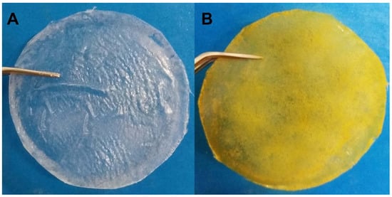 Cellulose acetate films without (A) and with JR19 (B).
