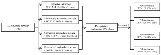 Wu, D.-T.; Zhao, Y.-X.; Guo, H.; Gan, R.-Y.; Peng, L.-X.; Zhao, G.; Zou, L. Physicochemical and Biological Properties of Polysaccharides from Dictyophora indusiata Prepared by Different Extraction Techniques. Polymers 2021, 13, 2357. https://doi.org/10.3390/polym13142357