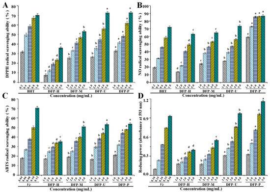 2.4. Evaluation of In Vitro Antioxidant Activities and Hypolipidemic Activities of DFPs