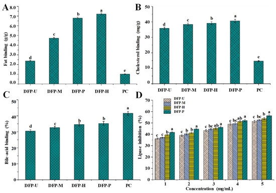 3.3. Comparison of In Vitro Hypolipidemic Activities of DFPs Prepared by Different Extraction Techniques