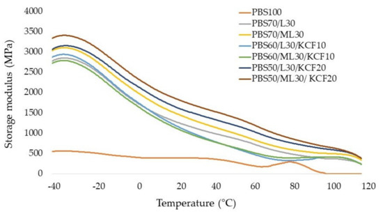 | PBS/Lignin/KCF | PBS50/L30/KCF20 | 50 | 30 | 3 | 20 |