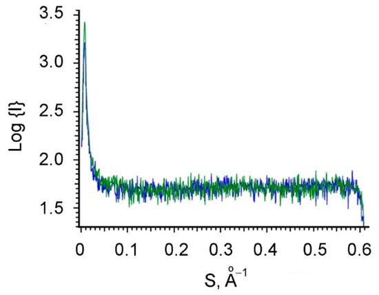 Further investigation by means of the small angle X-ray scattering (SAXS) of the electrolytes 3 and 4 containing HAuCl4 and formaldehyde showed the absence of any nanoparticles both in freshly prepared solutions and after 60 min of exposure. This is indicated by the fact that the intensity curves of both solutions are identical and represent an almost straight line (Figure 3), which does not enable us to build a spectrum of the particle size distribution.