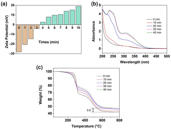 Zeta potential (a), UV–vis absorption spectra (b), and TGA curves (c) of BPS upon light irradiation for various times.