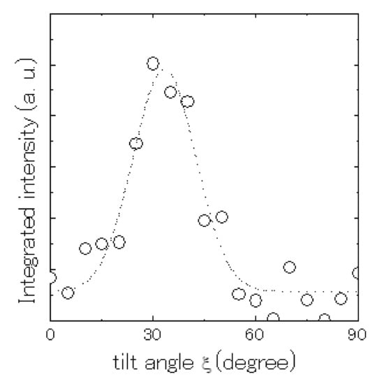 Integrated intensity of 110 reflection with variation in tilt angle ξ.