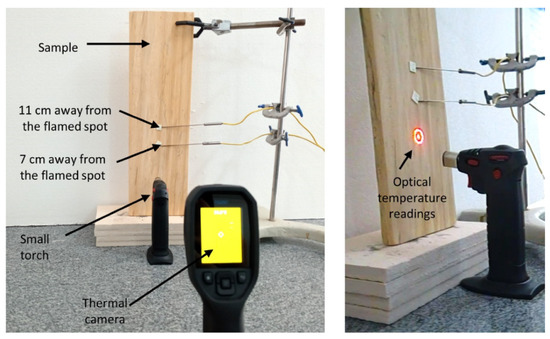 The protocol for the wood assay used in these experiments is presented in Figure 6. Temperature measurements at a point adjacent to the flame application were made with the optical thermometer of the thermal chamber.