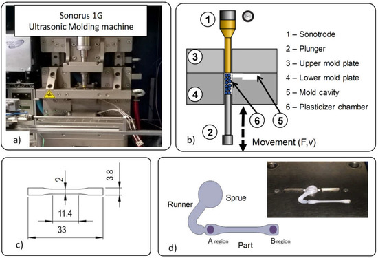 - Sacristán, M.; Plantá, X.; Morell, M.; Puiggali, J. Effects of ultrasonic vibration on the micro-molding processing of polylactide. Ultrason. Sonochem. 2014, 21, 376–386. [Google Scholar] [CrossRef] [PubMed]