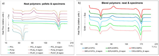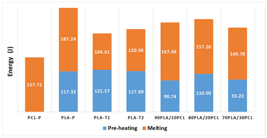 - Wachirahuttapong, S.; Thongpin, C.; Sombatsompop, N. Effect of PCL and Compatibility Contents on the Morphology, Crystallization and Mechanical Properties of PLA/PCL Blends. Energy Procedia 2016, 89, 198–206. [Google Scholar] [CrossRef] [Green Version]