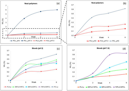 - Sailema-Palate, G.P.; Vidaurre, A.; Campillo-Fernández, A.J.; Castilla-Cortázar, I. A comparative study on Poly(ε-caprolactone) film degradation at extreme pH values. Polym. Degrad. Stab. 2016, 130, 118–125. [Google Scholar] [CrossRef]