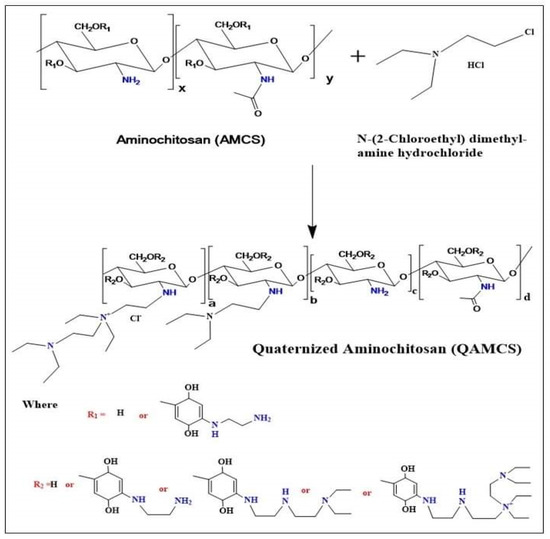 - Freitas, E.D.; Moura, C.F.; Kerwald, J.; Beppu, M.M. An Overview of Current Knowledge on the Properties, Synthesis and Applications of Quaternary Chitosan Derivatives. Polymers 2020, 12, 2878. [Google Scholar] [CrossRef]