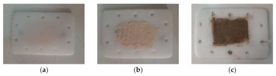 As result, on each protective panel thin layers of RT powder or sand was deposited (Figure 5). The depositions of the layers were done using the same method. The RT powder, having a granulation of 1500–2500 nm, is mixed with copolymer granules and vinyl acetate. The mixture is placed on the polymer protection panel. They are heated by radiation from a resistive source up to 180 °C. At this temperature the copolymer melts, while the polymeric support is in a fluid-viscous state, and the deposition layer is created by combining the two.
