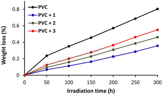 2.6. Assessment of PVC Photodegradation by Weight Loss (%)