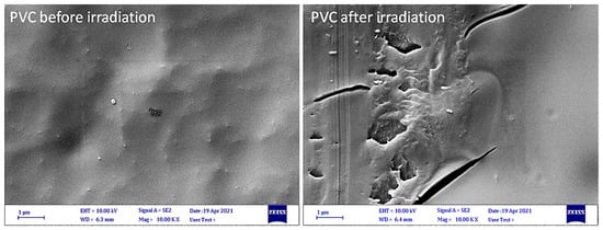 3.9. Assessment of PVC Photodegradation by the FESEM