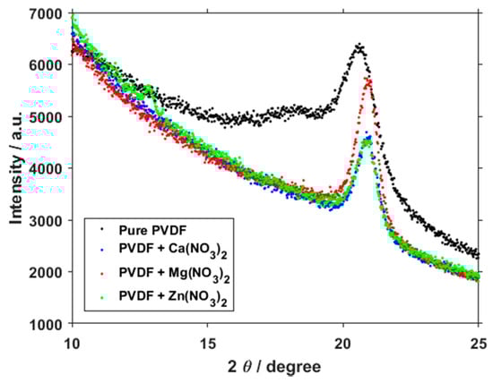 Sobola, D.; Kaspar, P.; Částková, K.; Dallaev, R.; Papež, N.; Sedlák, P.; Trčka, T.; Orudzhev, F.; Kaštyl, J.; Weiser, A.; et al. PVDF Fibers Modification by Nitrate Salts Doping. Polymers 2021, 13, 2439. https://doi.org/10.3390/polym13152439