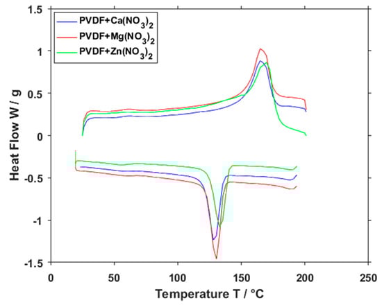 | PVDF with Ca(NO3)2 | 124.1 | 125.2 | 11.9 | 9.6 |