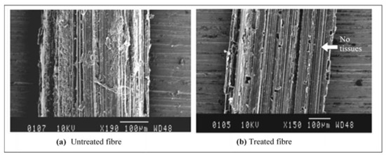 (a) Untreated and (b) treated fibre strips.