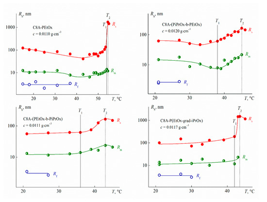 - Kirila, T.Y.; Kurlykin, M.P.; Tenkovtsev, A.V.; Filippov, A.P. Behavior of aqueous solutions of thermosensitive starlike polyalkyloxazolines with different arm structures. Polym. Sci. A 2017, 59, 826–838. [Google Scholar] [CrossRef]