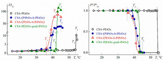 - Sezonenko, T.; Qiu, X.-P.; Winnik, F.M.; Sato, T. Dehydration, micellization, and phase separation of thermosensitive polyoxazoline star block copolymers in aqueous solution. Macromolecules 2019, 52, 935–944. [Google Scholar] [CrossRef]