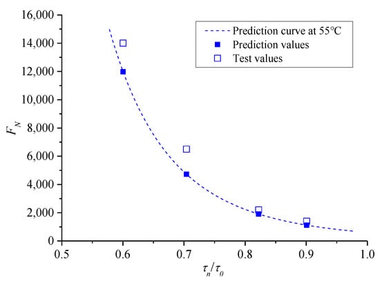 Comparison diagram of predicted and tested FN at 55 °C.