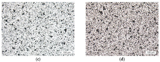Transmission optical microscopy images of nanocomposites with 0.5 wt.% (left) and 2 wt.% (right) nanocomposites: before (a,b) and after (c,d) the application of three-roll calender at 100×.