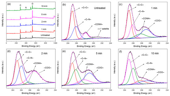 3.2. Surface Chemical Analysis of PPTA and UHMWPE Samples