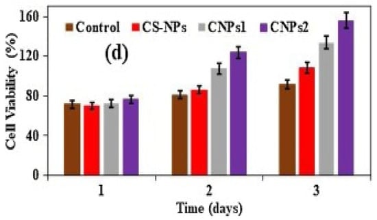 Cell viability of chitosan (CS) nanocomposite hydrogel nanoparticles (CNPs). Reproduced with permission from [34].