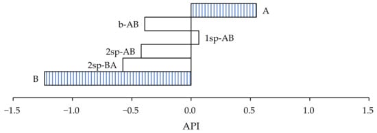 As shown in Figure 7, according to the values assigned to determine the API, the samples that most closely approximated the wine cellars’ requirement in the case of paper substrate were samples A and 1sp-AB.