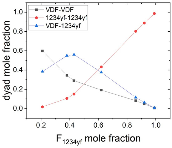 The data are summarized in Table 4, whereas Figure 6 displays the variation of the dyad fractions versus the 1234yf mole fraction in the copolymer.