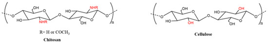 Chemical structures of chitosan and cellulose. Reprinted with permission from Ref. [99]. Copyright 2021, MDPI.