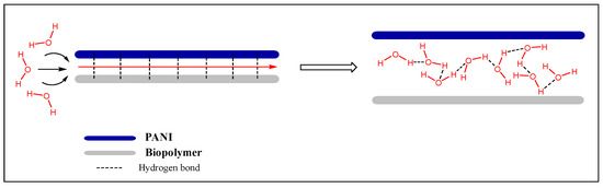 The hydrogen bond network between PANI and CHT accounts for the important role of absorbed water in the humidity-sensing mechanism for PANI. PANI/CHT composite materials are prone to absorbing larger amounts of water versus pristine PANI [77], despite their ability to serve as suitable humidity sensors. Overall, the sensing mechanism can be described as the electron transfer that occurs by the proton exchange, via H2O.