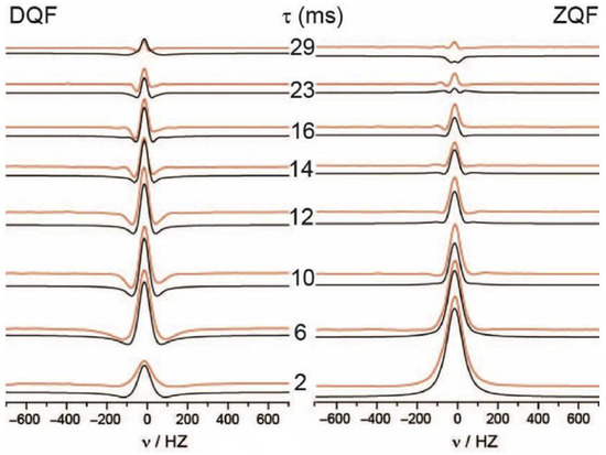 - Thiessen, A.N.; Verbeek, W.; Gritter, K.; Ooms, K.J. Assessment of the sensitivity of DQF/ZQF 2H NMR of D2O for studying modified Nafion membranes at 20 °C and 80 °C. Solid State Nucl. Magn. Reson. 2018, 93, 1–6. [Google Scholar] [CrossRef]