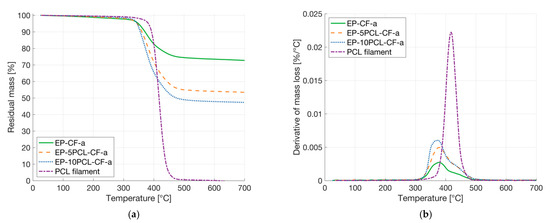 | Sample | T1% [°C] | T5% [°C] | TdEP [°C] | TdPCL [°C] | m700 [%] |