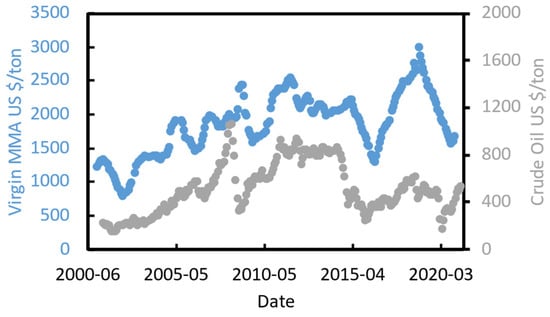 - Sale, K. Europe MMA July Prices Increase as Oversupply Eases, Feedstocks Firm. Available online: https://www.icis.com/explore/resources/news/2020/07/31/10536612/europe-mma-july-prices-increase-as-oversupply-eases-feedstocks-firm (accessed on 24 February 2021).