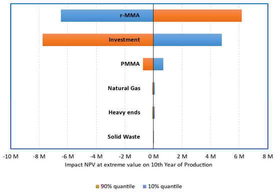 - NPV is most sensitive to the uncertainties on r-MMA price and investment. Expert judgment, experience on similar plants, subsidies, reduce the risk on the investment. Securing a deal with the r-MMA final buyers narrows down the r-MMA statistical distributions and improves the reliability of the business plan;