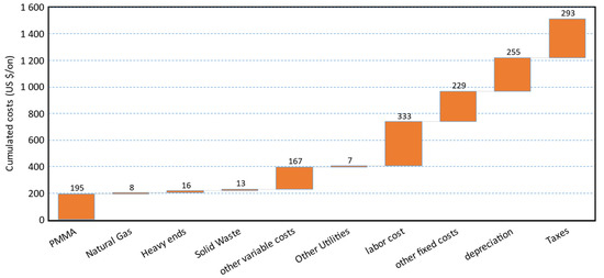 The sales are the revenue generated from the r-MMA, the expenses are the total expenses of the plant, the tax rate is set at 35% as for France, and the depreciation follows the straight line depreciation on 10 years [25]. In our assessment, we divided the expenses in Fixed and Variable. The Fixed expenses are:
