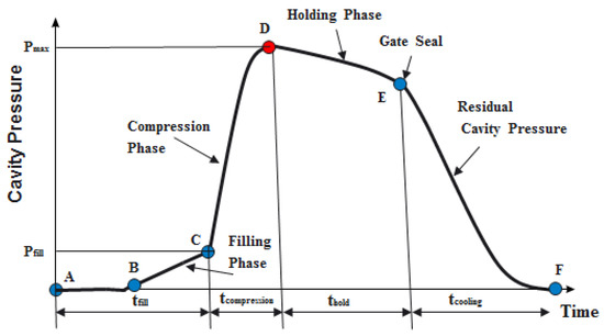 The typical cavity pressure profile, see A–F in Table 1.