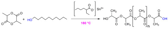 Scheme for the synthesis of PLA by ring-opening polymerization.