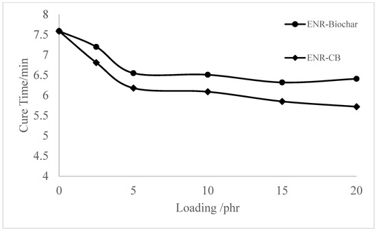 Cure time (tc90) of the ENR, ENR-Biochar and ENR-CB.