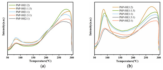 (a) CO2-TPD and (b) NH3-TPD patterns of different PhP-Hf catalysts.