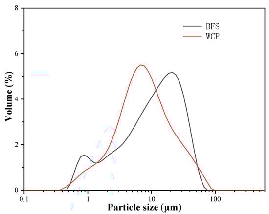 50) of BFS and WCP were found to be 12.2 μm and 7.92 μm, respectively. The median particle size of WCP was smaller than that of BFS.