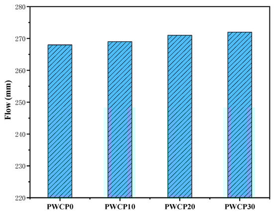 1. As the WCP content increased, the flow value of the paste increased slightly, which may be due to the varying physical properties and chemical reactions of the raw materials.