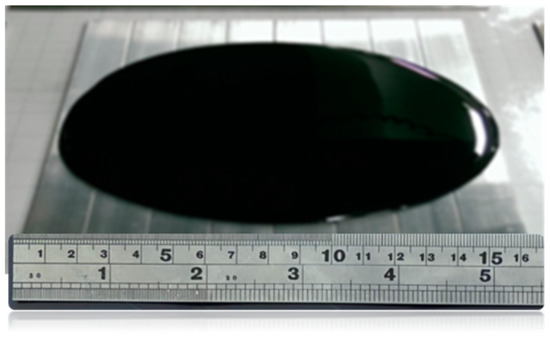 GNPs were obtained from Uchess Co., (New Taipei City, Taiwan) and used as received without further purification. The thickness and lateral dimension were in the ranges of 1–10 nm and 0.5–20 μm, respectively, which were provided by the manufacturer. The epoxy consists of two components, part A Mungo 4200 A and part B Mungo 4200 B, respectively, purchased from Golden Root Co., Ltd. (Taipei City, Taiwan). The epoxy was mixed with hardener at a weight ratio of 2:1 in accordance with the manufacturer’s recommendation. Ethanol was added into the liquid epoxy to reduce the viscosity, which is helpful for the dispersion. Then, GNPs were incorporated into the epoxy matrix and dispersed by a sonicator (Q700, Qsonica L.L.C., Newtown, CT, USA) The sonication probe was immerged into the GNP and epoxy mixture and operated at a pulse mode with 10 s on and 20 s off for 20 min. Thereafter, the curing agent was added into the mixture and manually stirred for 20 min. Consequently, the mixture was put in a vacuum chamber under a constant temperature of 25 °C for 60 min to remove the trapped air due to the stirring. Then, the degassed GNP/epoxy nanocomposite was poured onto an Al substrate and placed in a spinning coating machine (RMT-SC 150SS, Reliable-Mate Technology Co., Ltd., Shin-Chu City, Taiwan) as shown in Figure 1. A nanocomposite film with a thickness of 0.3 mm was deposited on an Al substrate using a spinning coating technology. The film thickness coated on the substrate can be moderated by adjusting the rotating speed of the spinning coating machine. In this work, the nanocomposite film thickness was 0.3 mm for all the test specimens. A series of nanocomposites with GNP contents of 0.3, 0.5, 0.8 and 1.0 wt % were prepared to evaluate the influence of the GNP loading on the hardness, elastic modulus, and mode II fracture toughness of the nanocomposite. The neat epoxy was also included for the comparison.