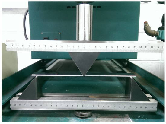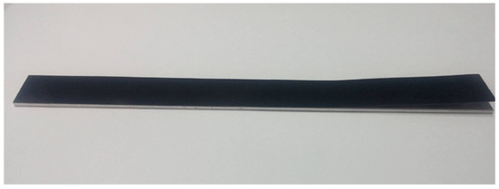 In this work, the dimensions of the ENF specimen were length 180 mm and width 19 mm. The thicknesses of the nanocomposite film and substrate were 0.3 mm and 2 mm, respectively. The interfacial edge crack length was 60 mm. The as-prepared ENF test specimen is shown in Figure 4. The ENF specimen was under a three-point bending loading, as shown in Figure 5. The load was slowly increasing at a loading rate of 0.5 mm/min to reach a critical load, which initiates the crack propagation. Substituting the critical load into Equation (10) leads to the determination of critical mode II strain energy release rate . Three ENF test specimens were fabricated and performed the three-point bending tests to determine the mode II fracture toughness for each GNP content. The average of the three test results was presented.