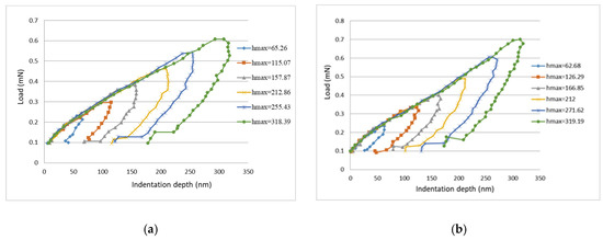 Moreover, the hardness and Young’s modulus of the nanocomposite are decreasing with the increase of the indentation depth. In the indentation tests, the indentation depth is increasing with the increase of the indentation load. As the indentation depth increases, the plastic deformation of the nanocomposite film is increasing. Thus, the hardness and Young’s modulus of the nanocomposite film are decreasing as the indentation depth is increasing due to the increase of the plastic deformation.