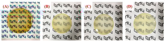 Pictures of blended anion exchange membranes: (A) pristine QA–PPO, (B) QA–PPO/PVDF(2/8), (C) QA–PPO/PVDF(3/7), and (D) QA–PPO/PVDF(4/6).