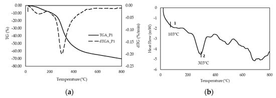 42]. Moreover, in DSC an endothermic peak appears around 300 °C, which corroborates the degradation of the low molecular weight protein fraction, as well as structurally bound water, which is observed in the thermogravimetric analysis.