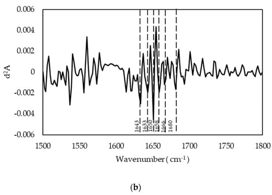 43]. We focused in particular in the Amide I band, as it is more sensitive to changes in the secondary structure. Qualitatively, the Amide I band can be explained by the superposition of bands corresponding to different conformational states of the polypeptide chain [