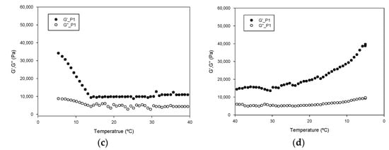 The rheological measurements of a hydrogel formed with gelatin P1 show typical gel behavior, which disappears as gelatin is heated above 14 °C (