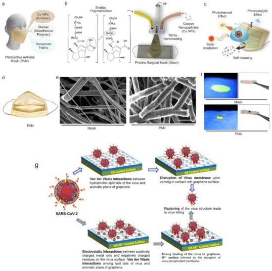 - Kumar, S.; Karmacharya, M.; Joshi, S.R.; Gulenko, O.; Park, J.; Kim, G.-H.; Cho, Y.-K. Photoactive antiviral face mask with self-sterilization and reusability. Nano Lett. 2020, 21, 337–343. [Google Scholar] [CrossRef] [PubMed]