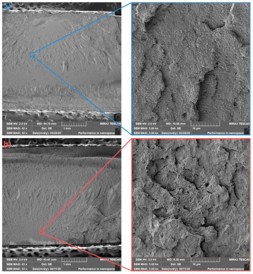 3.4. Fracture Surface Morphology (SEM Analysis)