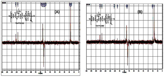 DEPT-135 spectra of (A) TDI-PPG-1000 and (B) TDI-PPG-2000.